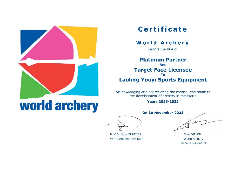 國(guó)際射箭聯(lián)合會(huì)-白金合作伙伴、國(guó)際射箭聯(lián)合會(huì)認(rèn)證器材、中國(guó)射箭協(xié)會(huì)審定器材